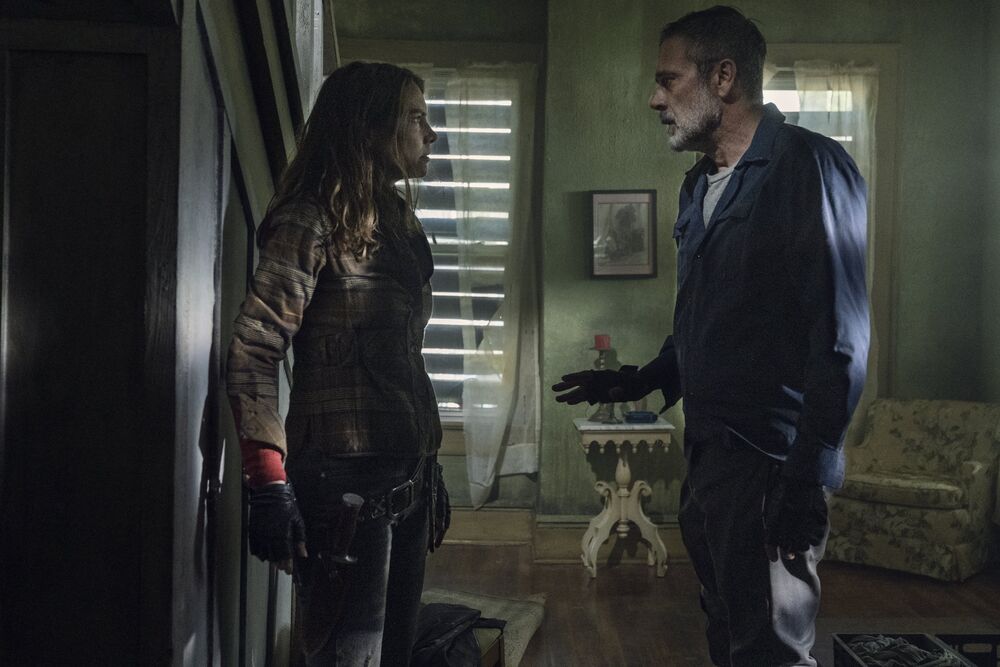Maggie y Negan (Jeffrey Dean Morgan) siguen luchando hasta llegar a la casa segura y se encuentran. Hay una gran foto de ellos formando equipo con un caminante. Negan sugiere nuevamente que podrían ser los únicos que quedan. Señala que solo funciona si confían el uno en el otro. Maggie pregunta por qué haría esto. Indica que ambos quieren seguir con vida. Ella le dice que si se mantiene viva, será a pesar de él. Él se vuelve hacia ella y le dice que no sabe por qué ella no lo ha dejado, y luego saca un cuchillo y lo arroja, pero no logra matar al caminante detrás de él. Ella le dice que le hace la misma pregunta todos los días, y él sabe que habla en serio.