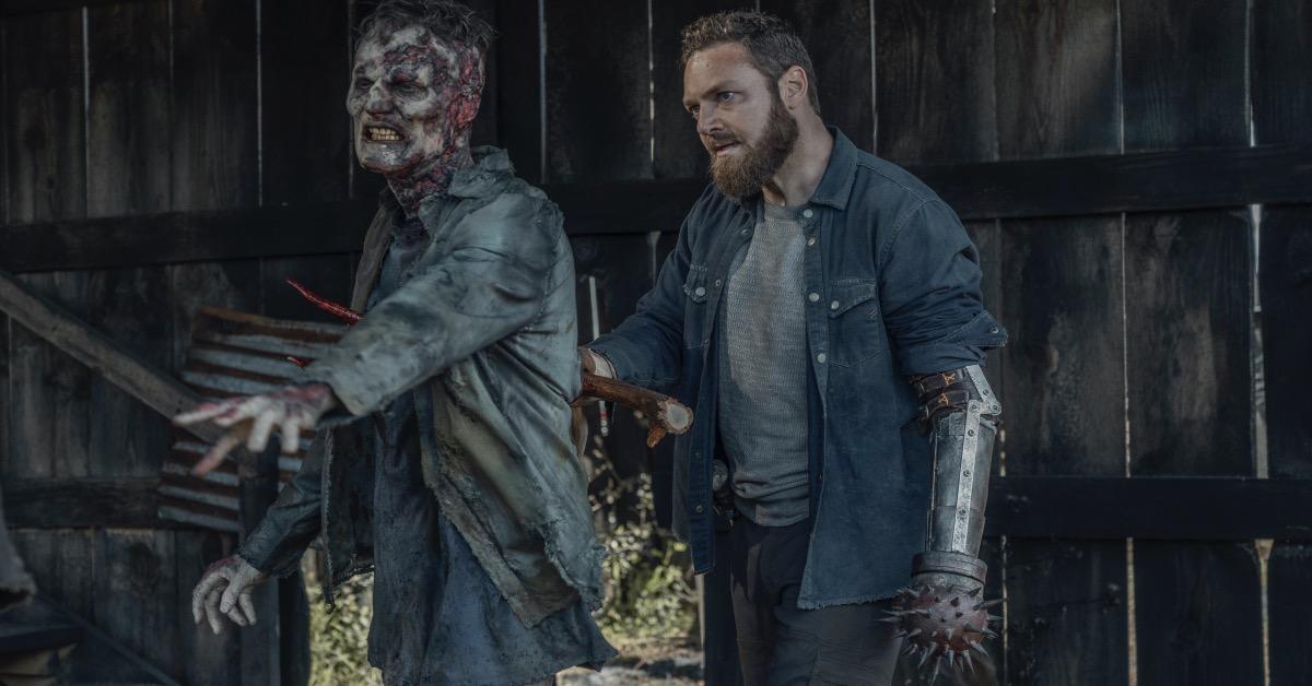 El grupo lleva los caballos a Hilltop. Parece que lo han limpiado. Reconocen a su propia gente como caminantes: ¡es otro gran trabajo de Nicotero con muchos héroes caminantes! Se dispusieron a matar a sus amigos. Anderson es especialmente bueno aquí, ya que la desesperación de Jerry es claramente visible en su rostro.
