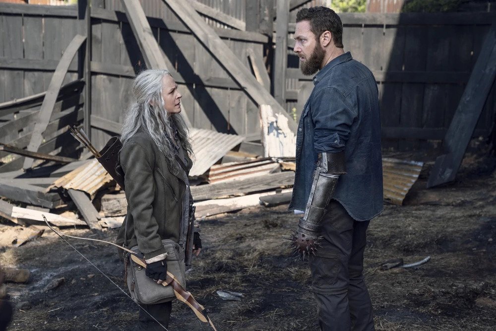 Aaron está furioso, pero Carol le dice que le está impidiendo hacer algo de lo que se arrepienta. Insiste en que solo está tratando de proteger a todos e insiste en que Carol, de todas las personas, debería entender. Esta es una gran escena entre Marquand, que está infrautilizado criminalmente en el programa, y McBride. Señala que están parados sobre las cenizas de su casa y Gracie se muere de hambre, y la cara de Cooper aquí es genial, no está arrugado, pero podemos ver claramente las emociones de Jerry, él siente lo mismo. Aaron insiste en que hay personas en el mundo que no pueden ser salvas y no permitirá que aparezcan en su puerta. Este es un momento muy triste para Aaron cuando lo conocimos por primera vez para salvar a la gente. También recurre a su sueño al principio. Siguió tratando de salvar a la gente solo para soplarlo en la cara.